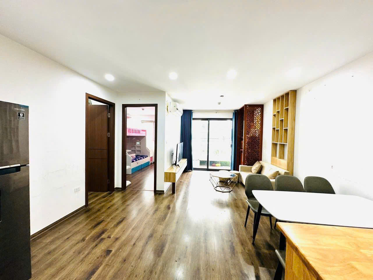 Tình trạng nội thất: Chủ nhà để lại toàn bộ nội thất như hình (sofa, giường tủ, bếp, điều hòa...). Đồ dùng còn rất mới, khách mua chỉ việc xách vali về ở ngay mà không cần sửa sang.