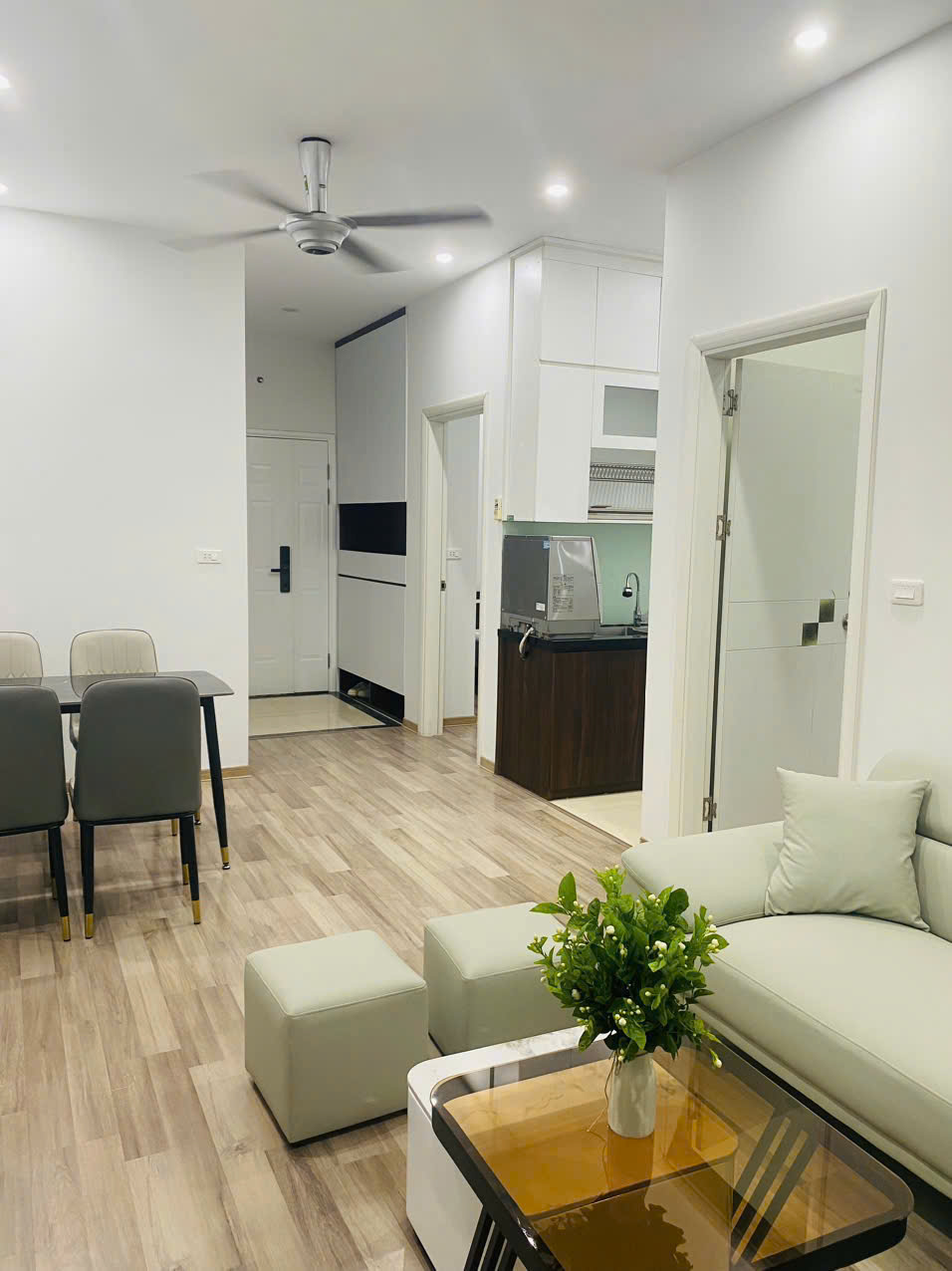 Khác với những căn hộ thô tốn thời gian sửa sang, căn hộ 65.7m2 này đã được chủ nhà chăm chút sẵn nội thất. Sự "vừa vặn" ở đây không chỉ nằm ở diện tích mà còn ở cách bố trí không gian: